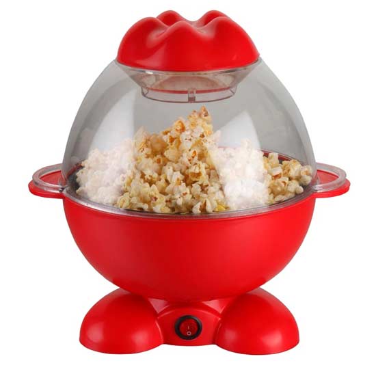 This electrical popcorn maker comes with an adorable plastic housing. The plug-and-play feature is convenient and easy to use. This powerful electronic appliance only takes 3 to 5 minutes to make popcorn.