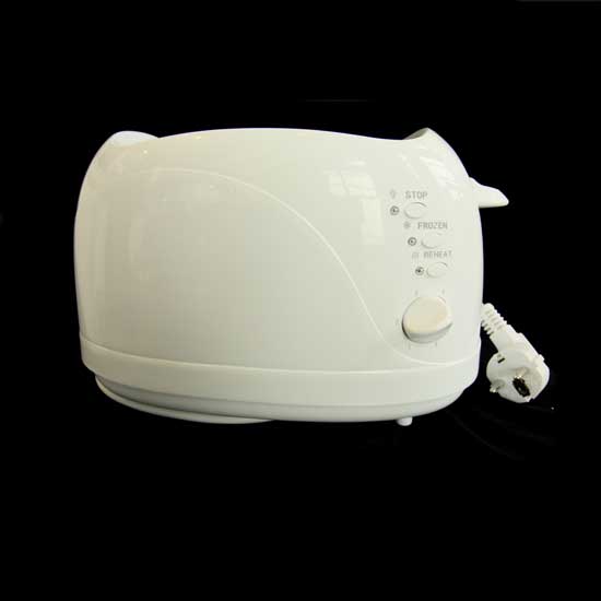 Featured here is an electrical toaster with a reheat function. The elegant white finish easily matches any kitchen decor. This electrical toaster makes a great choice as a housewarming gift.