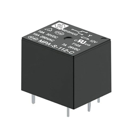 This is a PCB-type relay with a black housing and sturdy pins. It is made under strict QC to promise quality you can rely on. This relay is great for use in assorted electrical products.