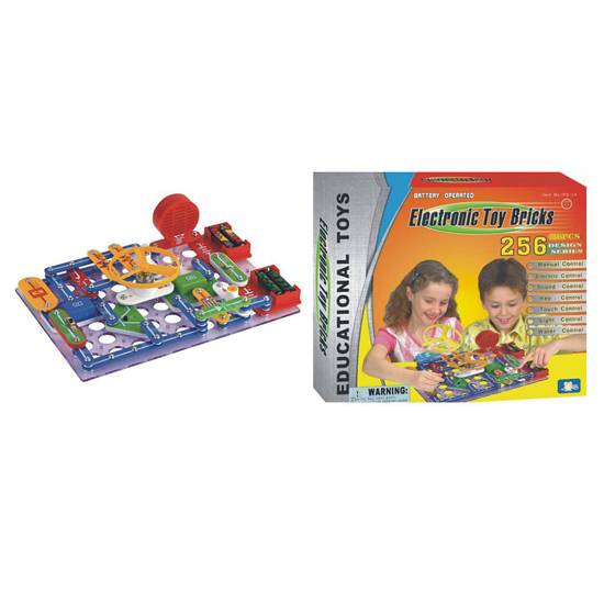 This is a set of electronic toy bricks which is ideal for teaching children physical knowledge. It consists of various innocuous ABS plastic clips that have electronic circuits on it. Children can use the components to assemble different kinds of electric circuits according to the circuit diagrams in the instruction book.