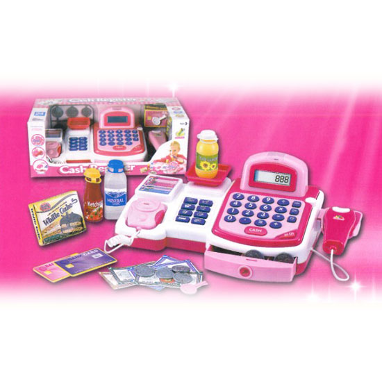 This toy register set helps children learn how to do simple transactions. The set includes an electronic cashier, toy money, toy goods and more. The colorful toy set will surely delight your kid.