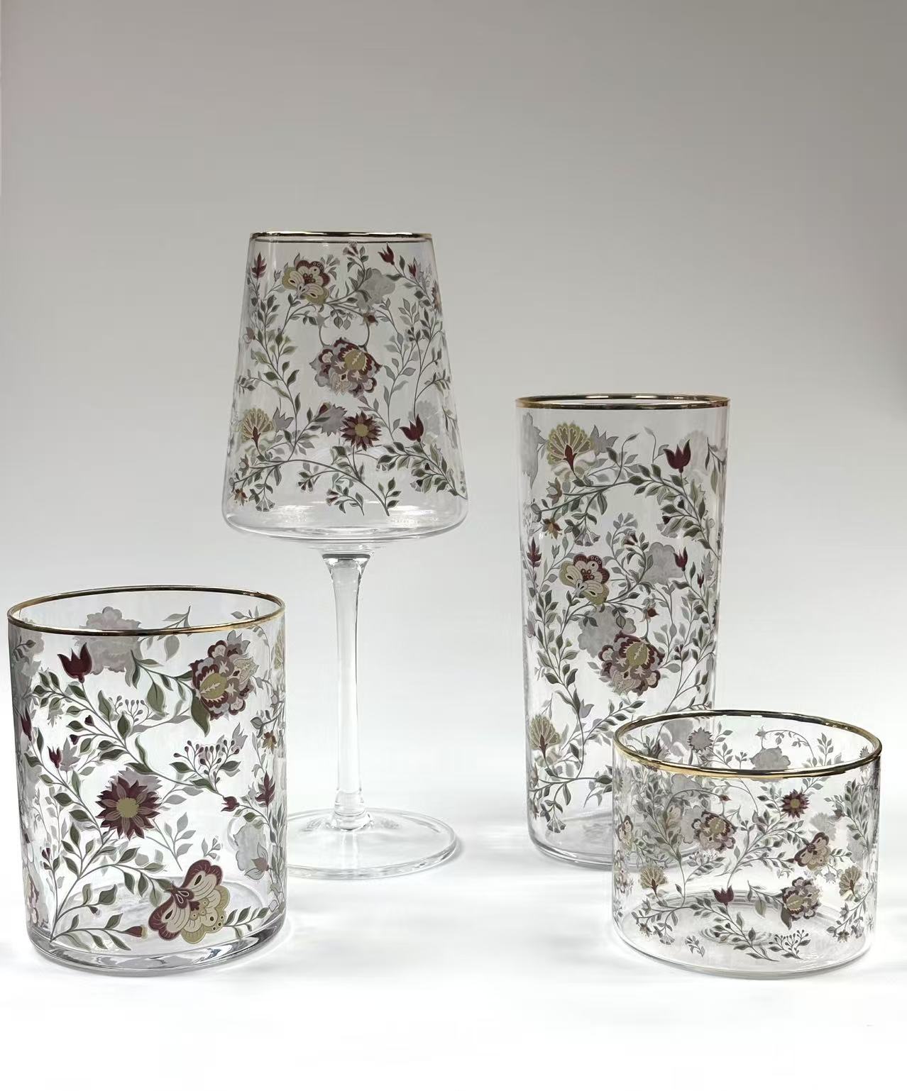 Botanical Elegance Floral Glassware Collection Timeless Luxury Drinkware with Delicate Hand-Painted Floral Motif