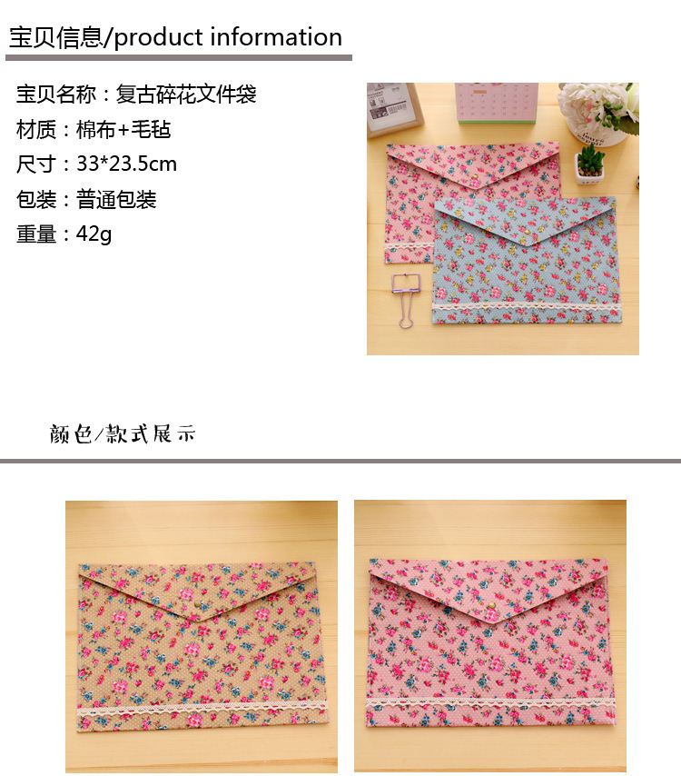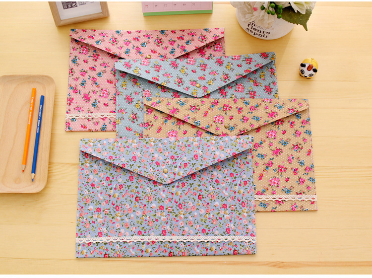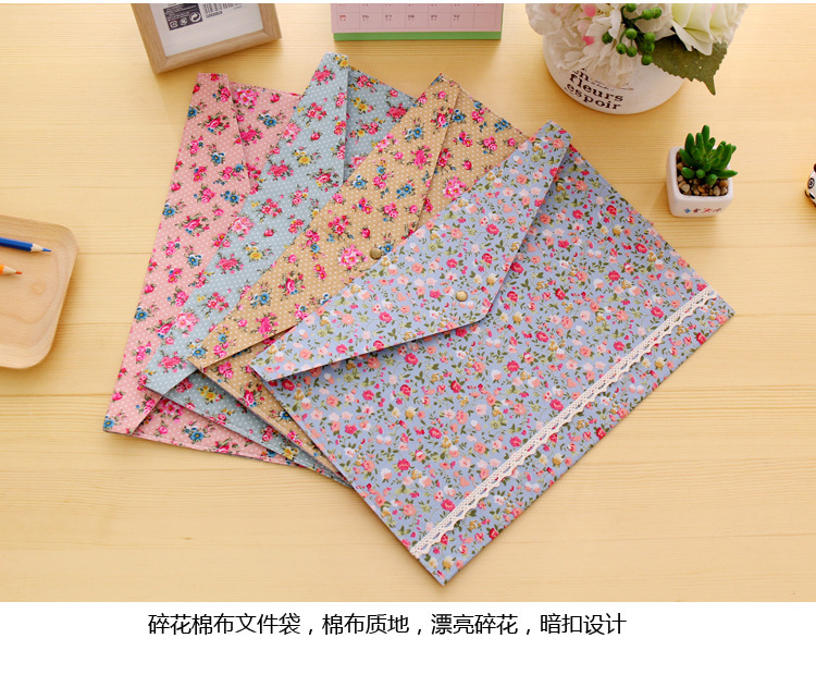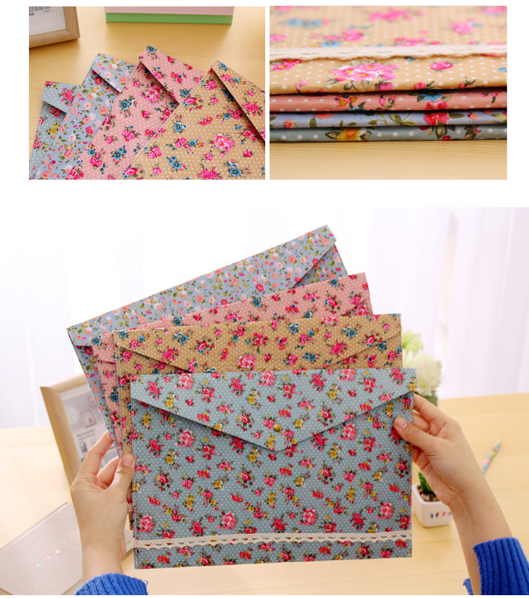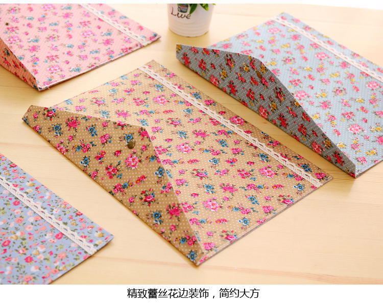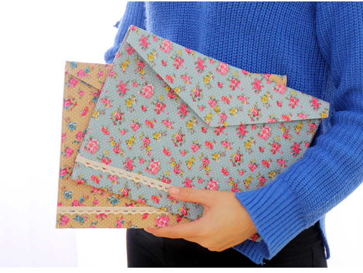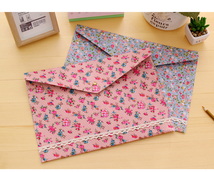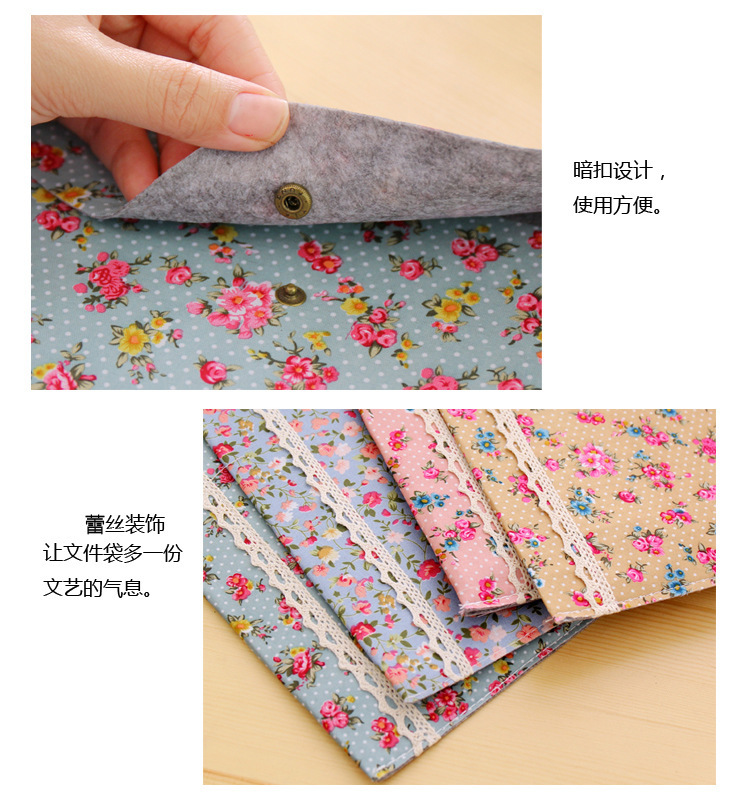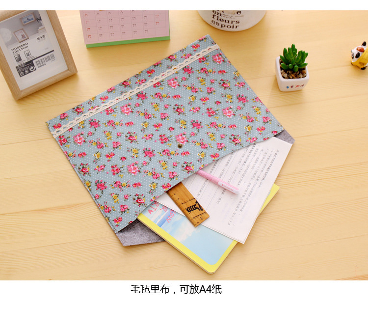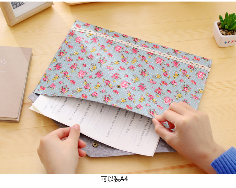 Elegant Floral A4 File Bag Small Fresh Felt File Bag Office Supplies A4 Snap Folder Wholesale