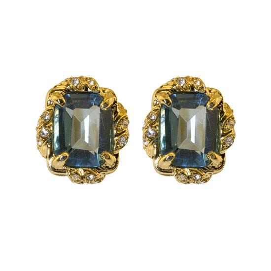 This pair of earrings boasts an elegant Elizabethan design. The sparkling blue stones are bezel-set on an exquisite golden frame for extraordinary shimmers. You can create the most decent look with these amazing earrings.