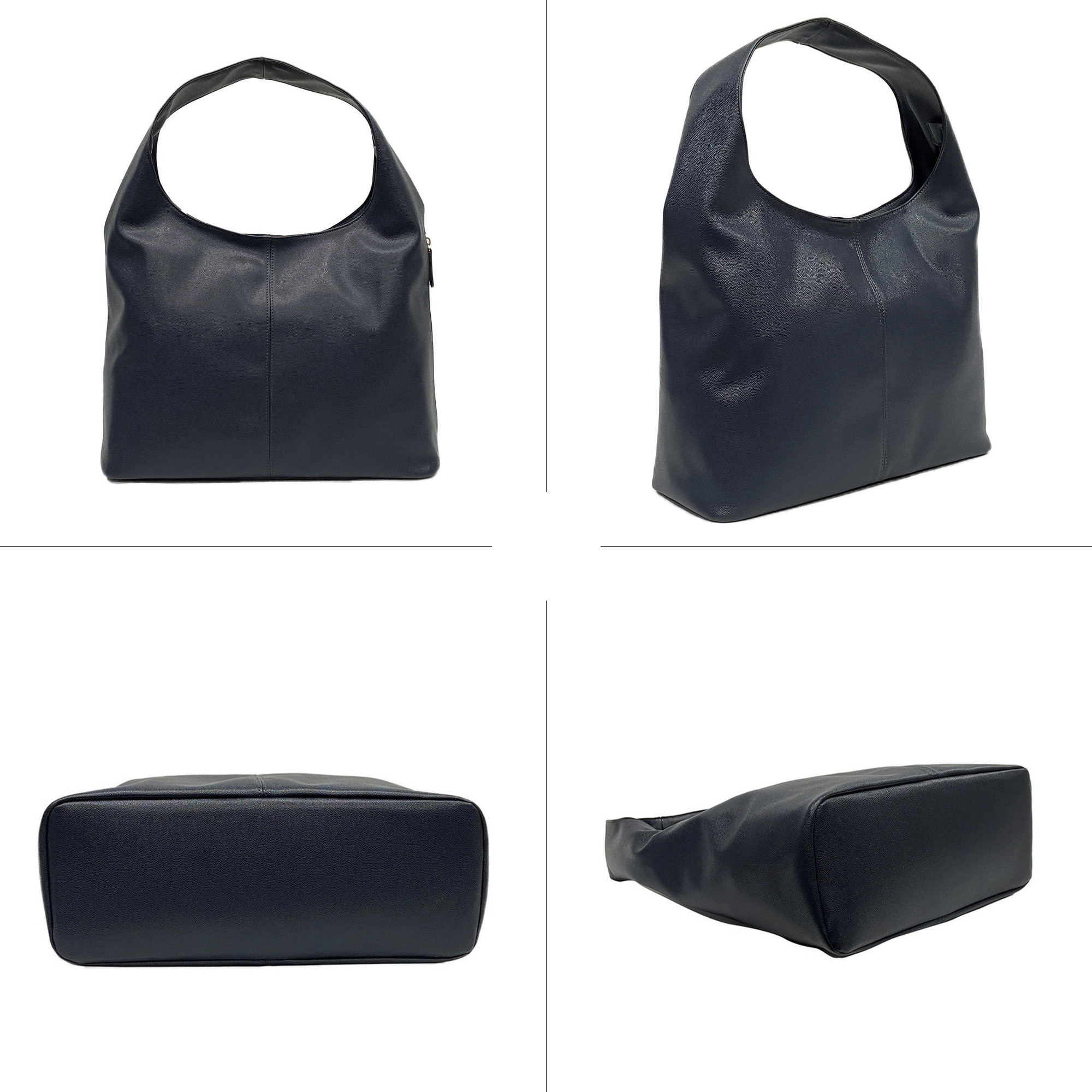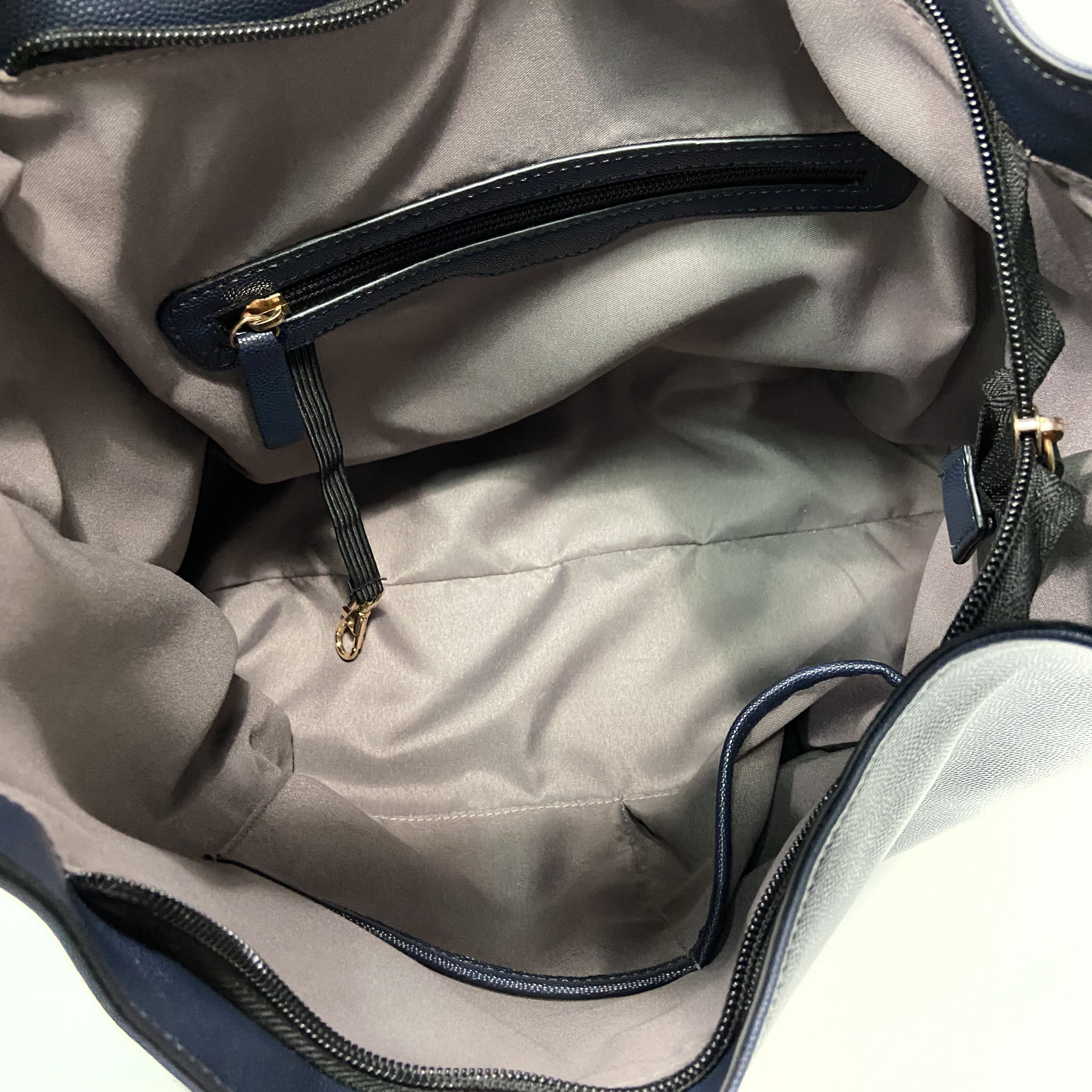 Embossed Bucket Imitation Leather Women handbag Tote bag Shoulder bag Zipper closure Navy