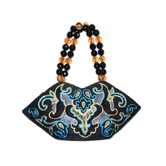 This hand embroidered bag comes with an eye-catching and ethnic design. It is finely made with great craftsmanship and delicate patterns. This well-designed bag features two beaded handles for easy carrying.