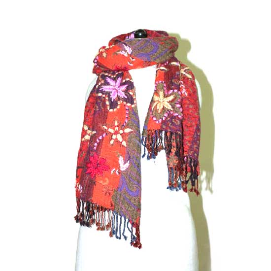 The outlined shawl is accented with beautiful embroidery for added style. The 100% wool construction allows added warmth. This embroidered wool shawl is comfortable to use.