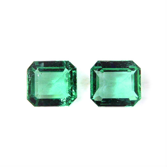 Emerald Zambian matching pair, clean transparent and unique octagon.