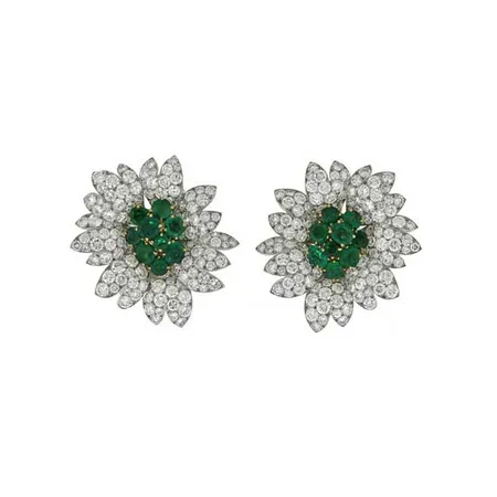 This is a pair of earrings that comes with an attractive flower appearance. The allover dazzling diamonds and emeralds add a touch of luxuriousness to the whole piece. This pair of earrings will surely add subtle elegance to your outfit.