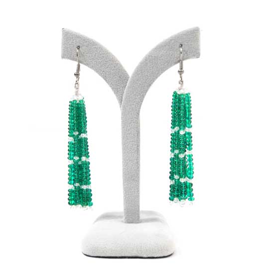 These exquisite dangling earrings look great on every lady. Embellished with diamonds and emeralds, the earrings showcase a beautiful aura. Ladies will surely fall in love with these emerald earrings.