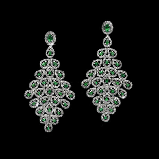 This is a pair of multi-stone emerald earrings that comes in a turbot shape. Accented with diamonds, these earrings are sparkling and eye-catching. This pair of emerald earrings is great for cocktail parties.