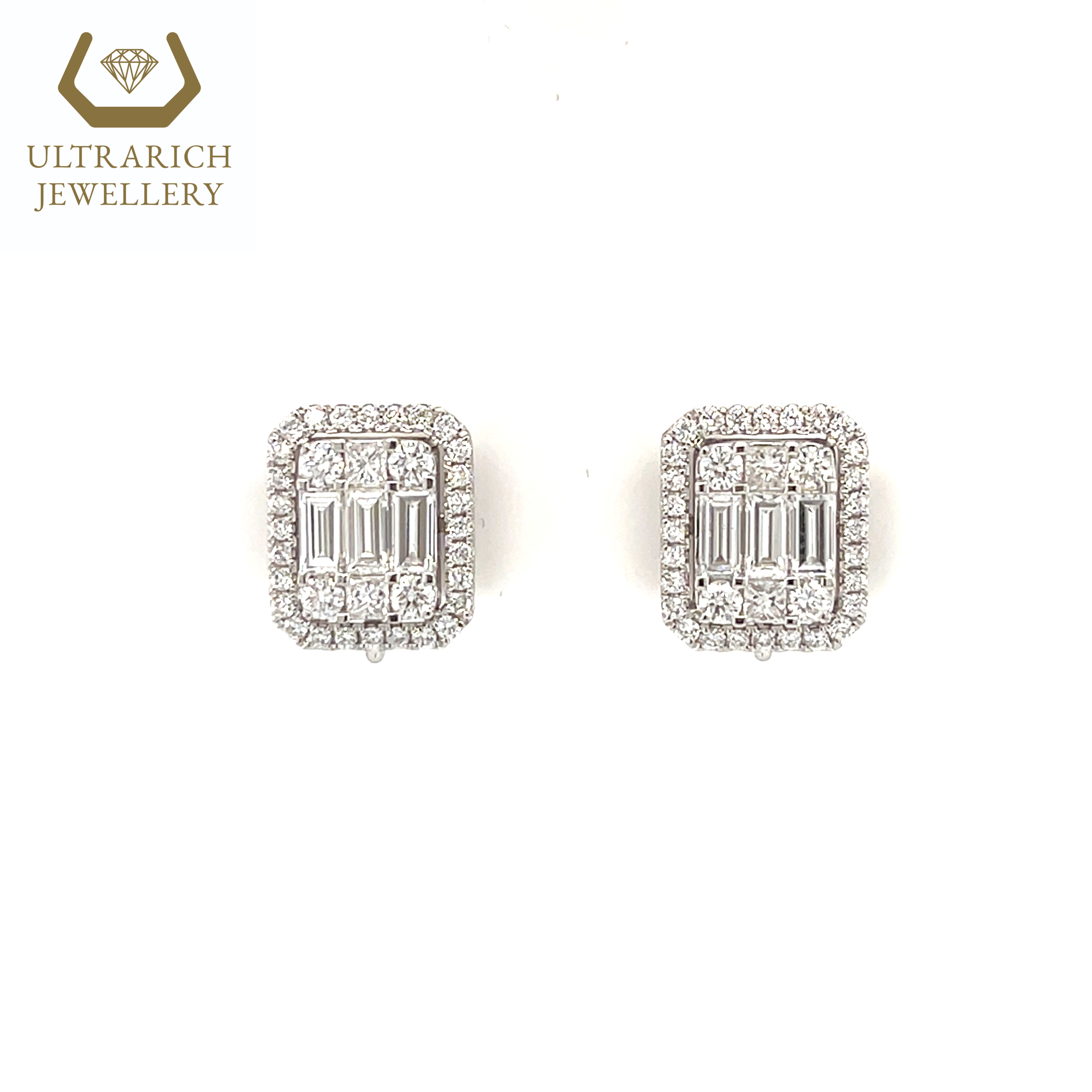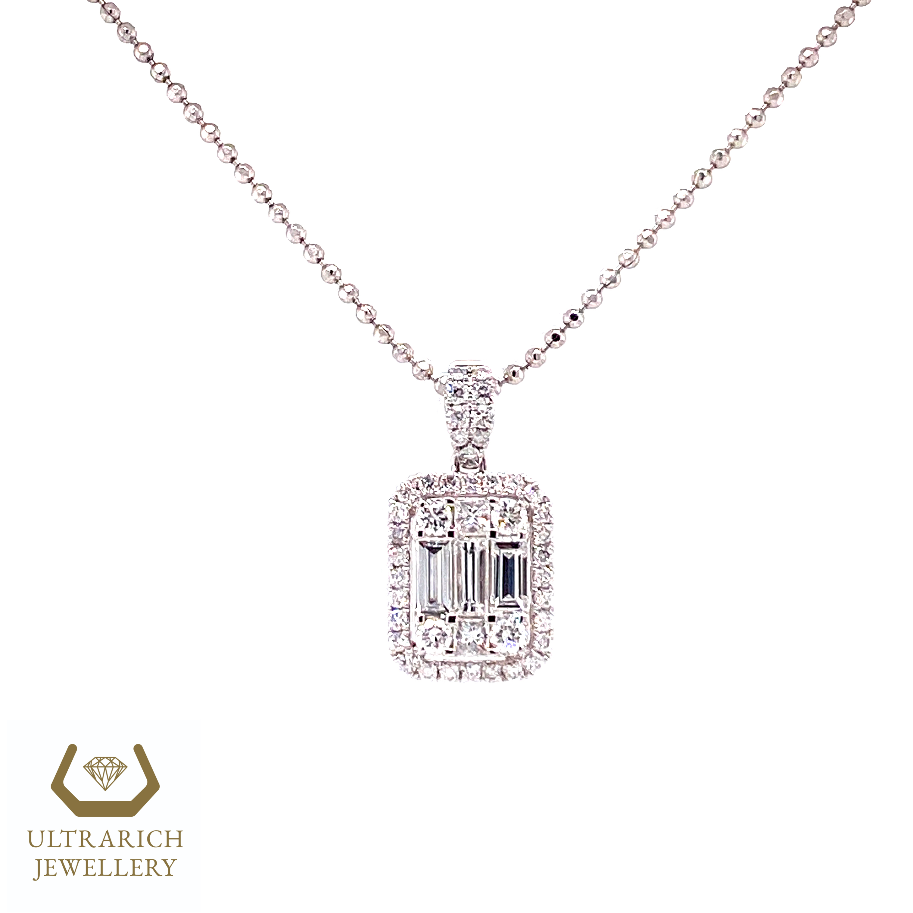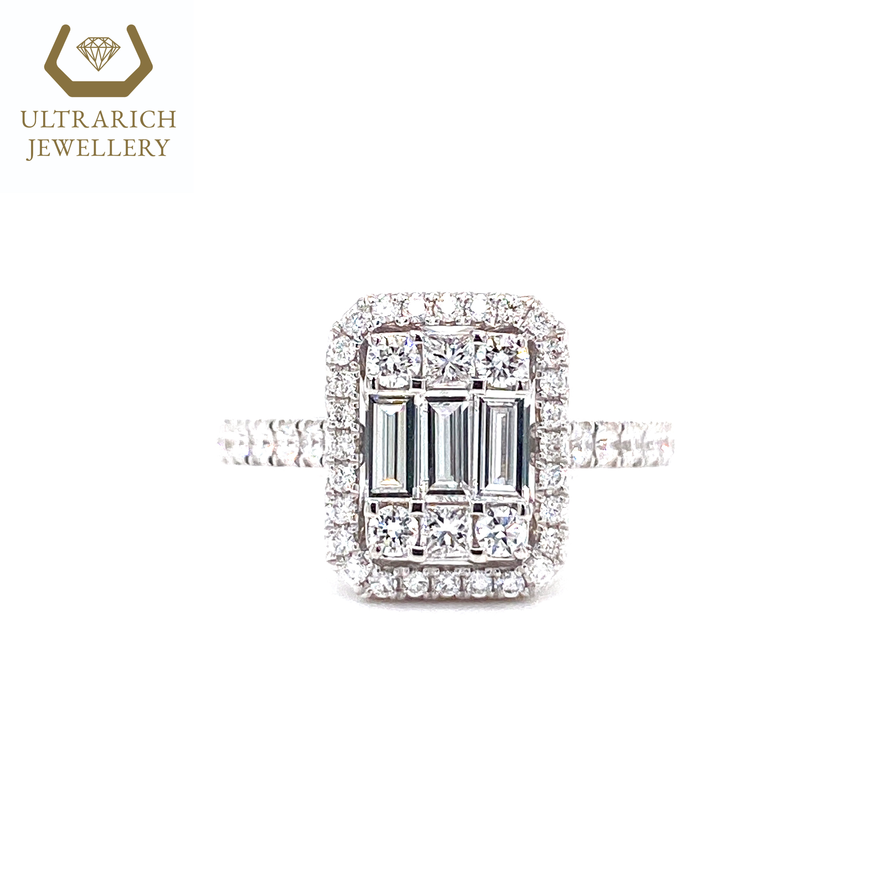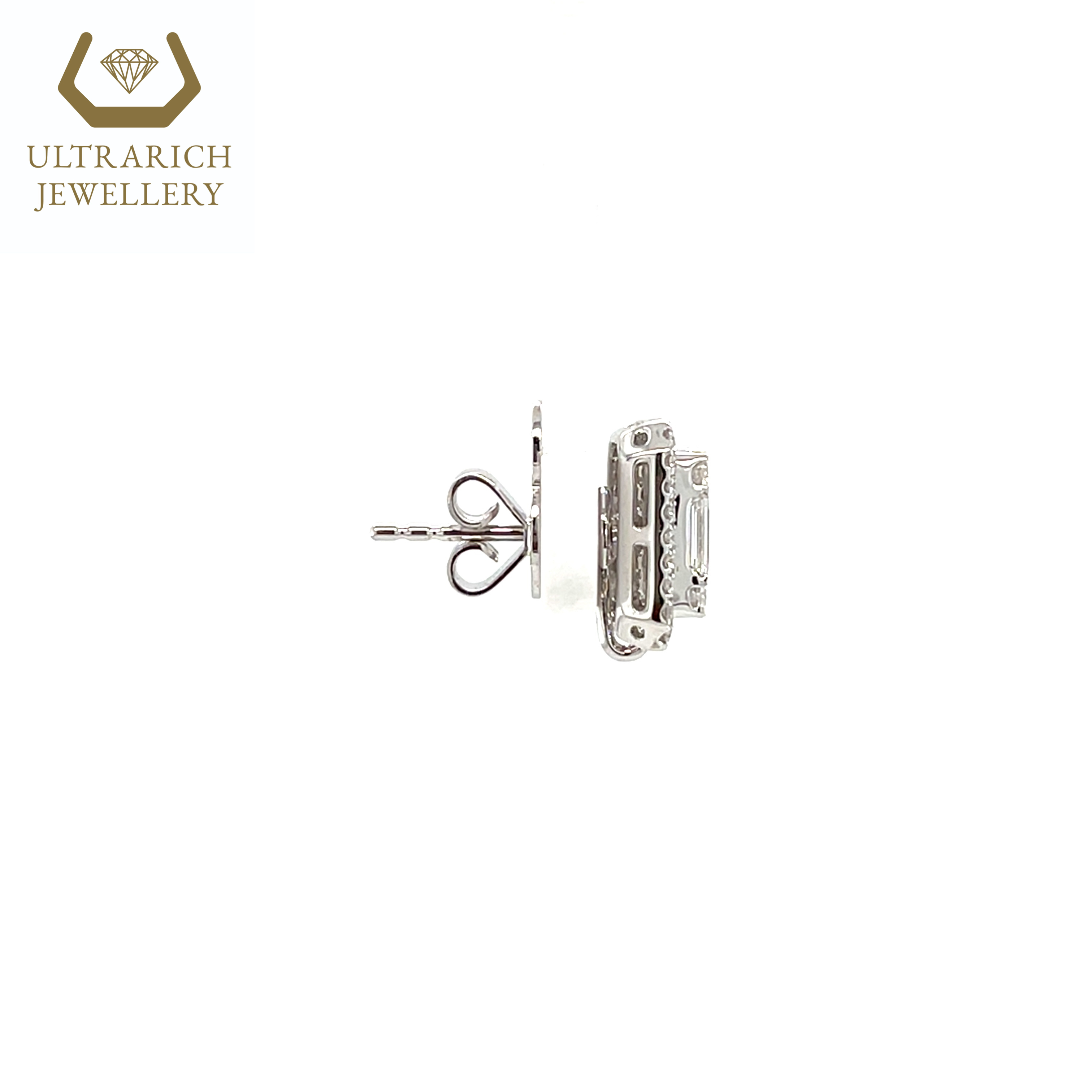 Emerald Cut Illusion Ring, Earring, and Pendant Set Made With All Natural FG VVS VS Diamonds Set In 18K White Gold