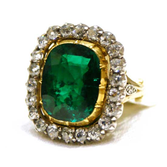 Featured here is an antique emerald ring with a lustrous appearance. The yellow gold casting conveys a touch of luxury. This emerald ring is a great gift for your beloved one.