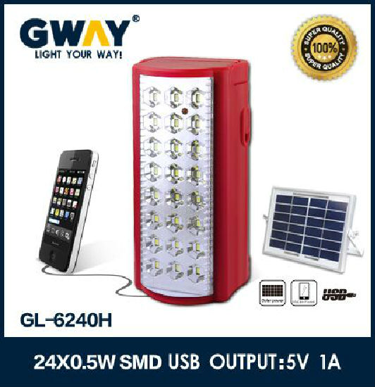 1) New ABS plastic body 2) 24pcs of 0.5W 5730 SMD LED light on the lamp 3) Auto-off function (when the power failure, the LED light can automatically turn on) 4) Built-in protective circuit against overcharging or overdischarging. 5) 8LED light can operate for about 50hours, 24LED can operate 15 hours 6)Recharging time : 20 hours 7)Transformer Charging+Cable inside 8)Dimension:95mm*85mm*198mm 9)Using 1pcs 6V 4AH sealed lead-acid battery 10)USB mobile charger,can equip with 9VDC solar panel Lumens:400lm Watt:12Watt