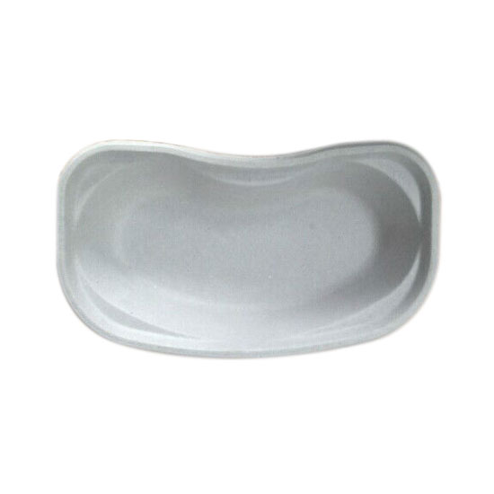This is an emesis basin that is a shallow basin with a kidney-shaped footprint and sloping walls used in medical and surgical wards to receive soiled dressings and other medical waste. The shape of the dish allows it to be held against the patient's body to catch any falling fluids or debris. It is made of paper pulp with excellent workmanship.