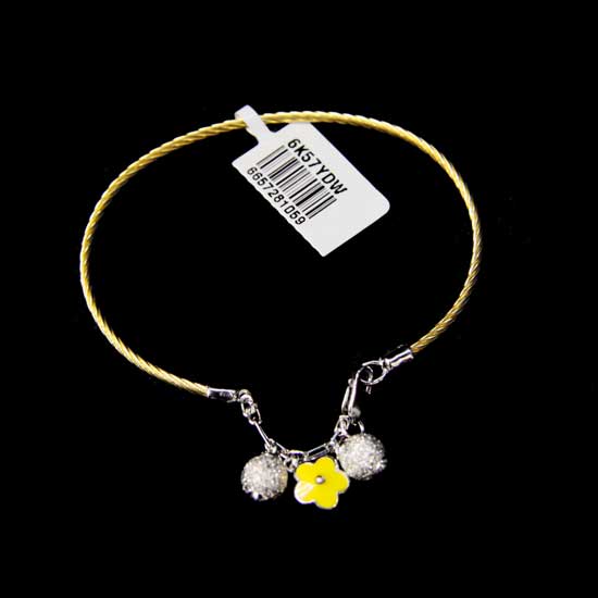 This elegant bracelet features a slim twisted chain accented with ball and flower charms. The attractive yellow flower charm is coated with enamel for added appeal. The tasteful bracelet is perfect to accessorize your daily look.