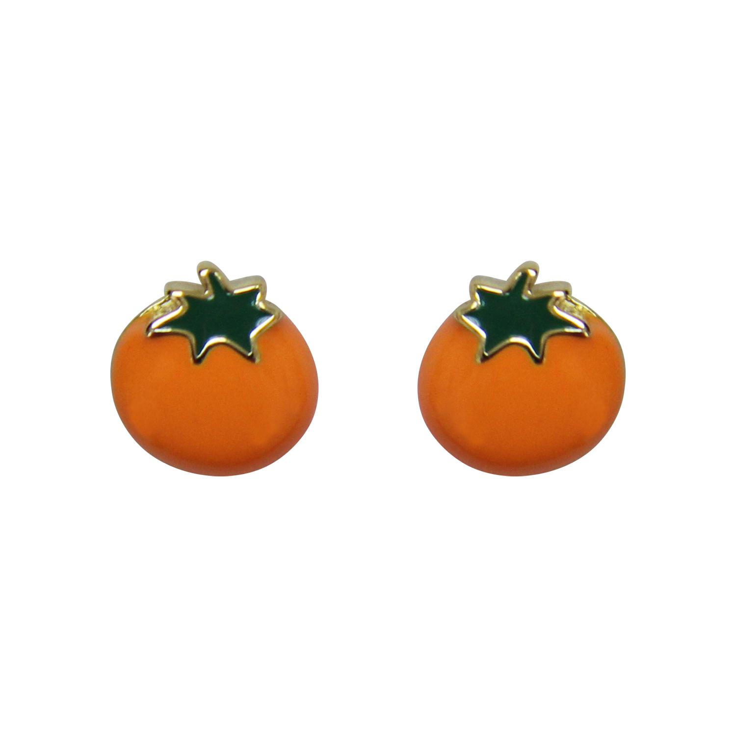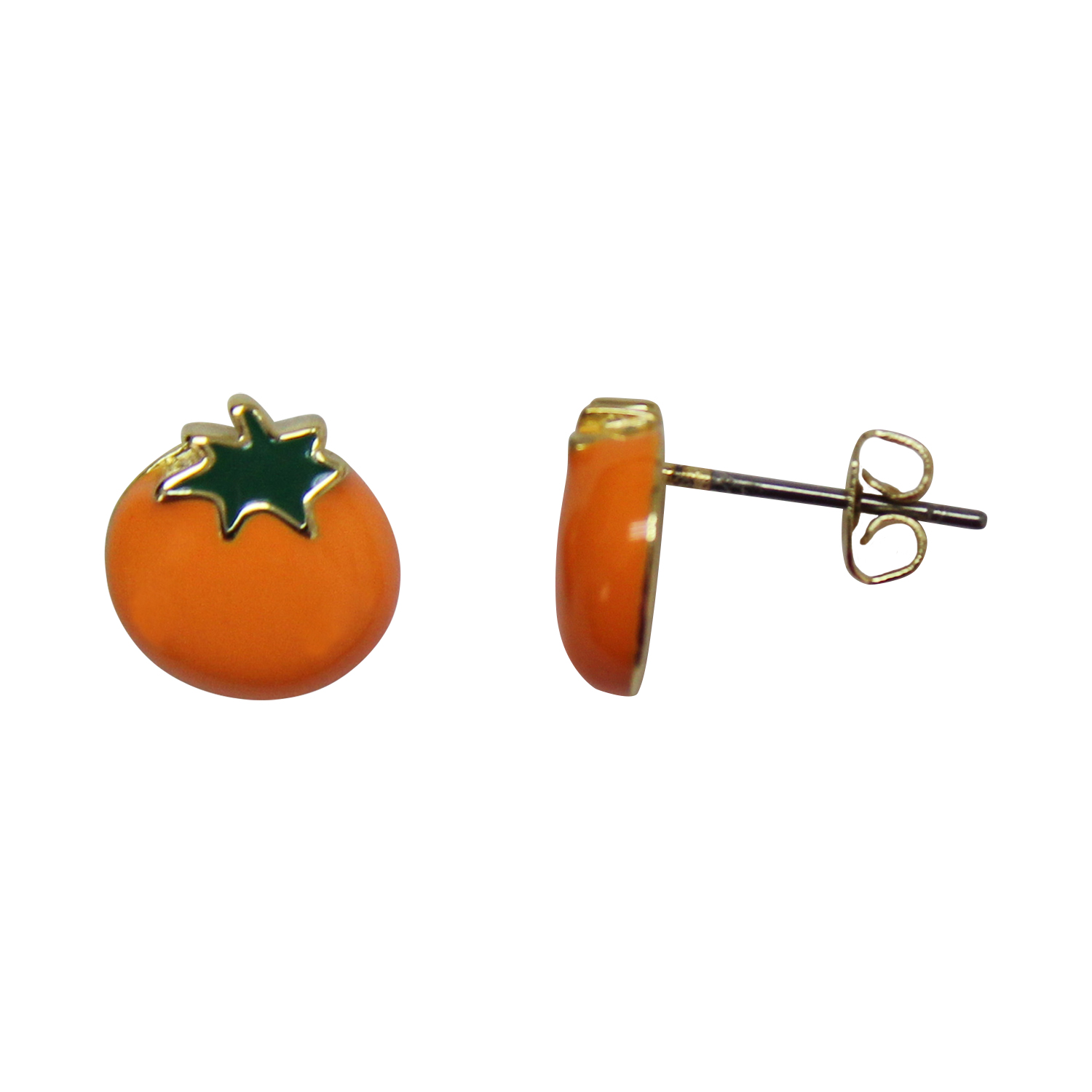 Brass stud earring, orange shape in orange enamel, all brass material are gold plated, free of nickel.