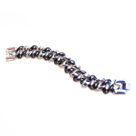 The bracelet features a classical chain design which will never go out of style. It alternates between stainless steel pieces and enamel pieces for an engaging contrast. The sturdy construction also allows this jewelry to serve you for years.