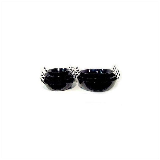 Enamelamine cookware is in black with handles
