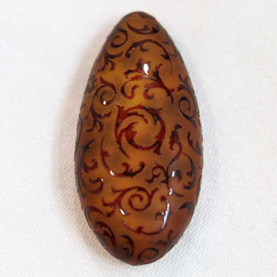 Presented here is a piece of amber engraved with delicate patterns. The amber is well polished for added glamor. This polished amber is a great choice for mounting on jewelry pieces.