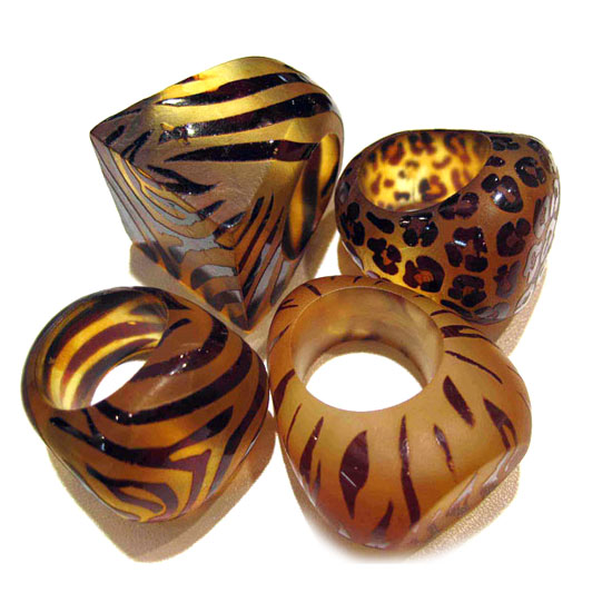 The engraved amber rings feature different alluring patterns: tiger stripes, zebra stripes and leopard spots. The patterns can be made thanks to our exclusive technology. Exclusive designs can also be engraved for customers.