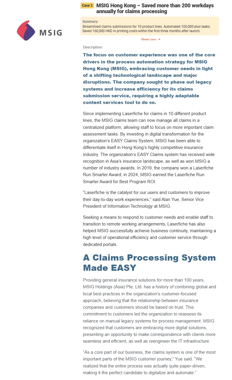 In Asia’s fast-paced financial services industry, where customers expect instant digital services and regulators demand greater accountability, institutions must modernize to stay ahead and drive new growth. With a cloud-based enterprise content management (ECM) and AI-powered automation platform, like Laserfiche, financial institutions are empowered to cut servicing times, connect fragmented data, and scale efficiently, enabling staff to focus on high-value activities and clients.