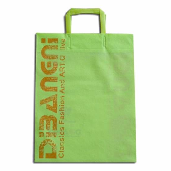 Featured here is an environmentally friendly shopping bag. It is made of green material. It is green in colour with handle. It is strong to carry heavy things. It is suitable packaging in retail stores.