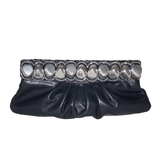 This evening bag has glass beads and silver nuggets embedded on it, making it look elegant