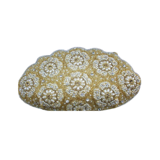 This is an evening bag which appeals to people with its beautiful and sparkling appearance. It is meticulously adorned with pearls and Zardozi works by hand. This refined clutch is suitable for special occasions.
