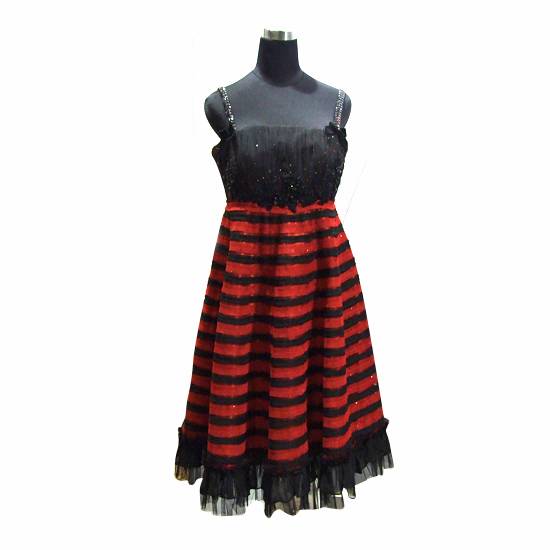 This evening dress is 100% handmade. It is made of silk and tule material. The dress features black and red colour contrast.