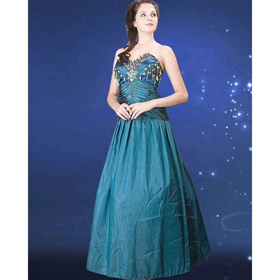This evening dress comes with a sweetheart neckline with a delicately pleated waist. The bodice is graced with dazzling stones to show off brilliant craftsmanship. Ladies will look fabulous at grand occasions in this gorgeous dress.