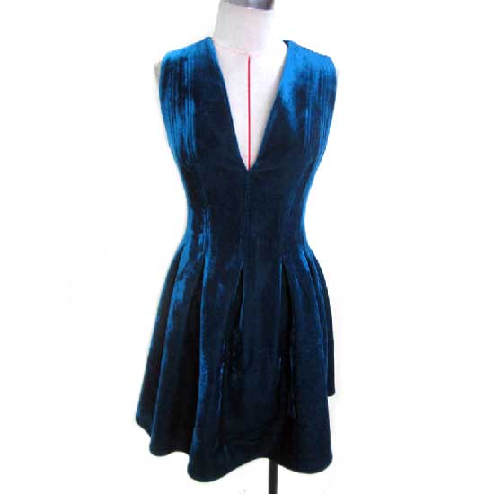 This evening dress in blue is made with knitted fabrics. The classic V-neck design lends an intriguing accent to your look. The flared skirt exudes a feminine touch.