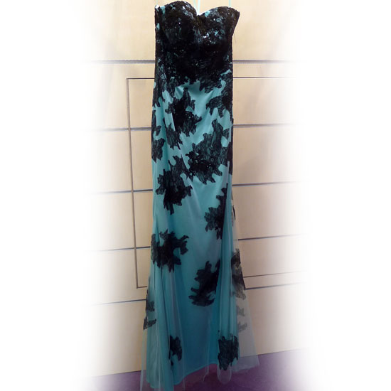 This is a ladies’ evening dress with a two-toned design in green and black. It is made of 100% polyester to ensure wearing comfort. This elegant evening dress comes with delicate lace patterns for extra style.