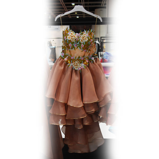 This is an elegant evening dress that is designed with a three-layer skirt. The gorgeous colorful embroidered details accent this high-fashion dress. This sleeveless dress is finished with two spaghetti shoulder straps.