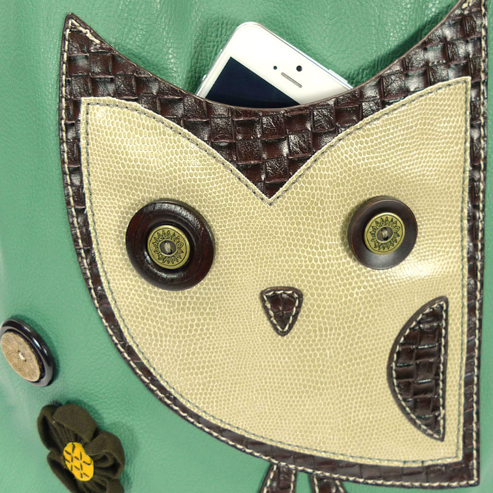 Features the Hoohoo Owl front pocket with detailed stitches and metal button eyes