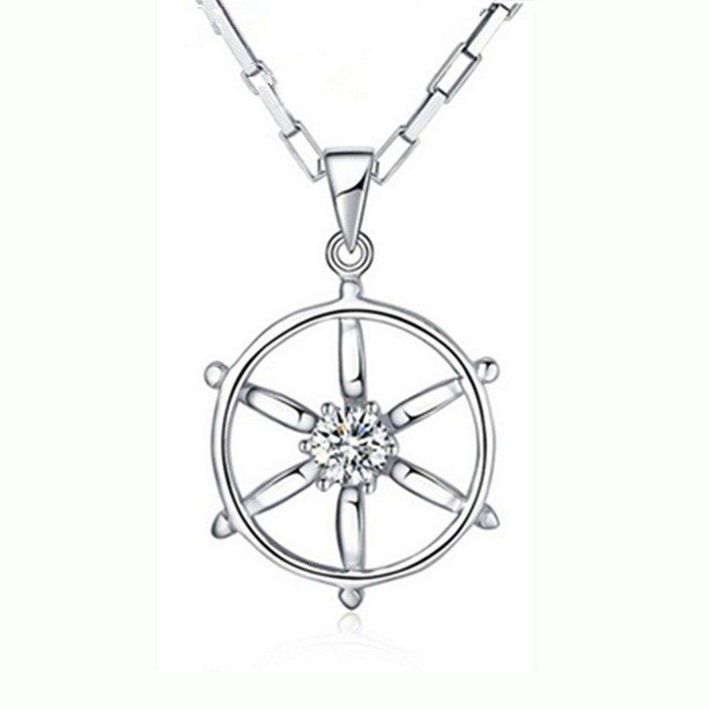 Excellent Crystal Steering Wheel Style Silver Plated Alloy Parts Necklace