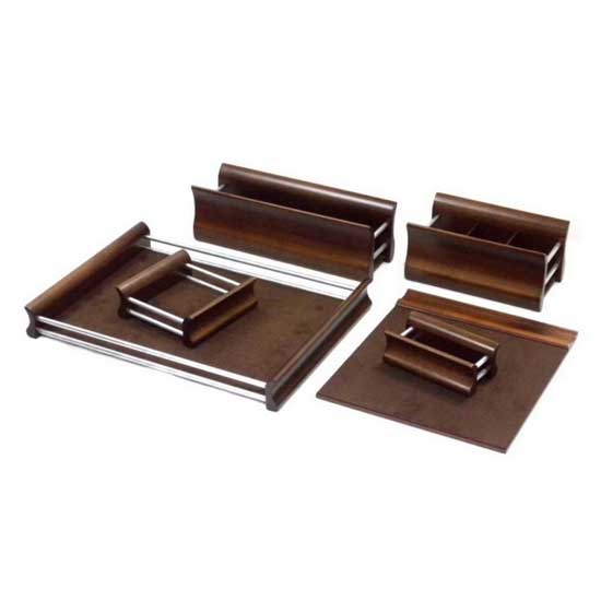 - Includes a letter tray, writing pad, letter holder, business card holder, memo holder and pencil cup.