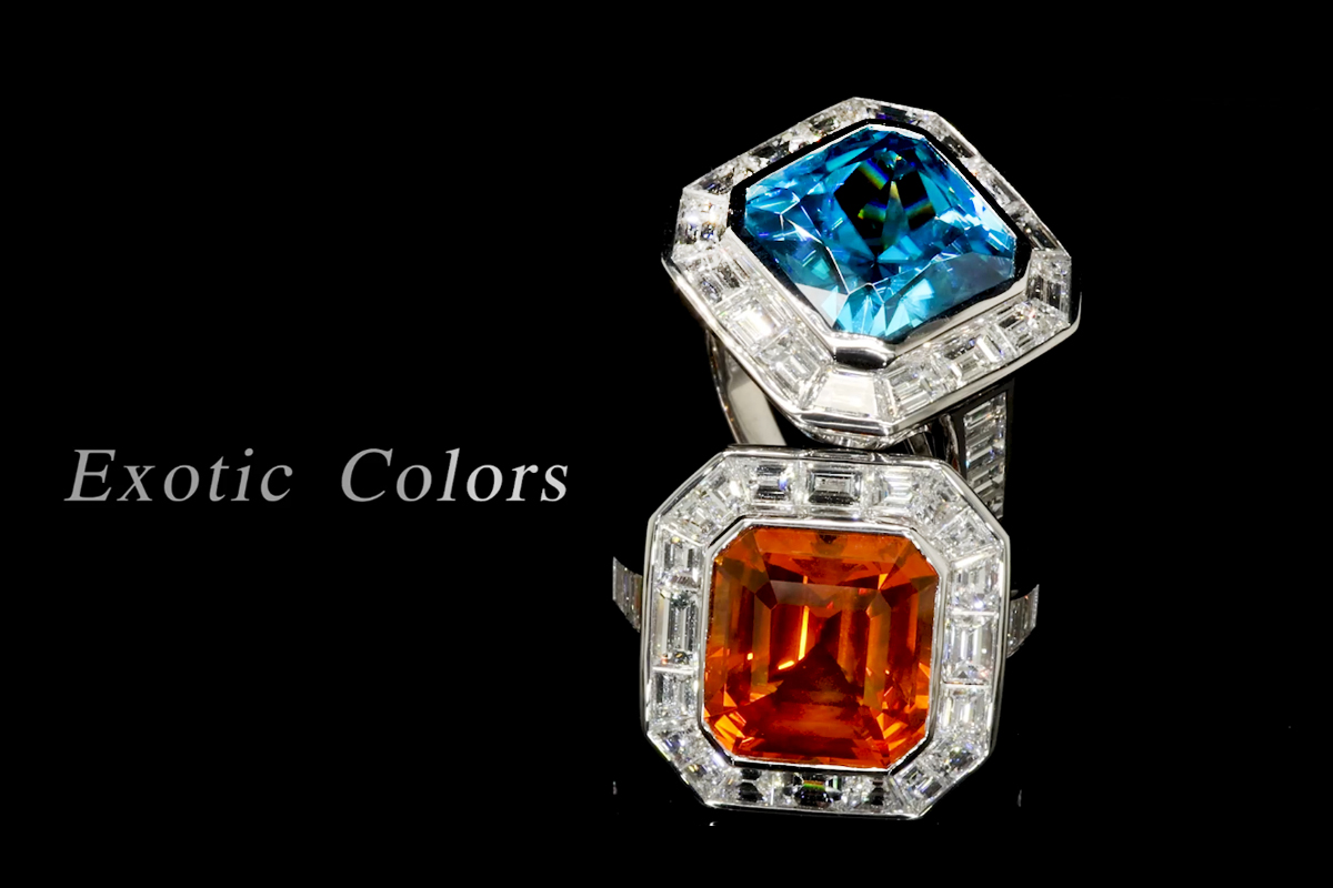 18K Gold Fine Jewelry - Blue Zircon / Orange Sapphire and diamond ring