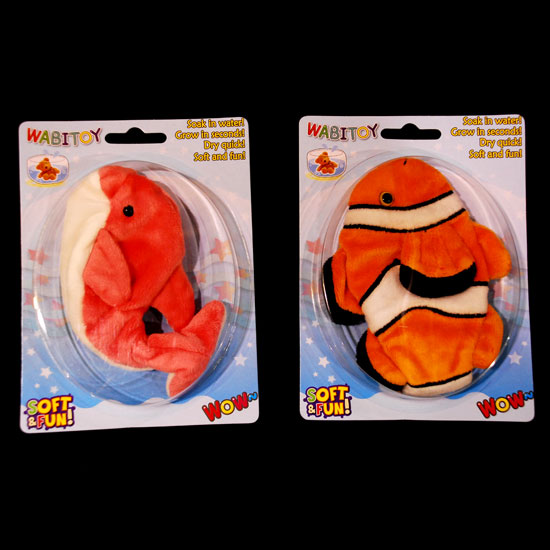 Showcased is a plush toy designed as an adorable clown fish. The unique water-friendly expandable material allows the toy to expand after chilling in refrigerators. The sharp orange-and-white appearance catches children’s attention easily.