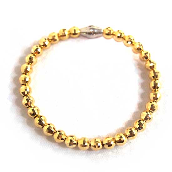 This bracelet is strung with extra-light beads which are made of silver. The beads are also finished with yellow gold plating for a brilliant and luxurious appearance. Featuring a magnetic fastener, this bracelet is easy to wear and take off.