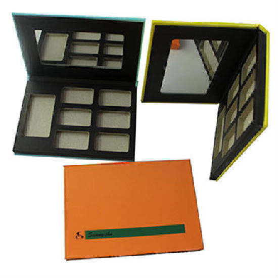 The displayed box is designed for packaging eye shadows. It offers 7 small compartments inside for storing eye shadows in different colors. It is covered with a lid and has a mirror at the back that allows you to apply makeup on the go.