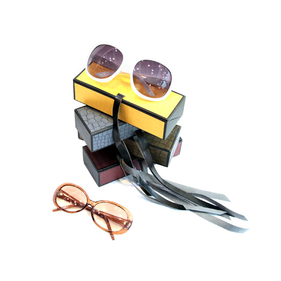 These boxes for eyeglasses are truly unique with a snakeskin texture. The lids can be fastened by tying the long leather strap. The exquisite design is excellent for gift packaging uses.