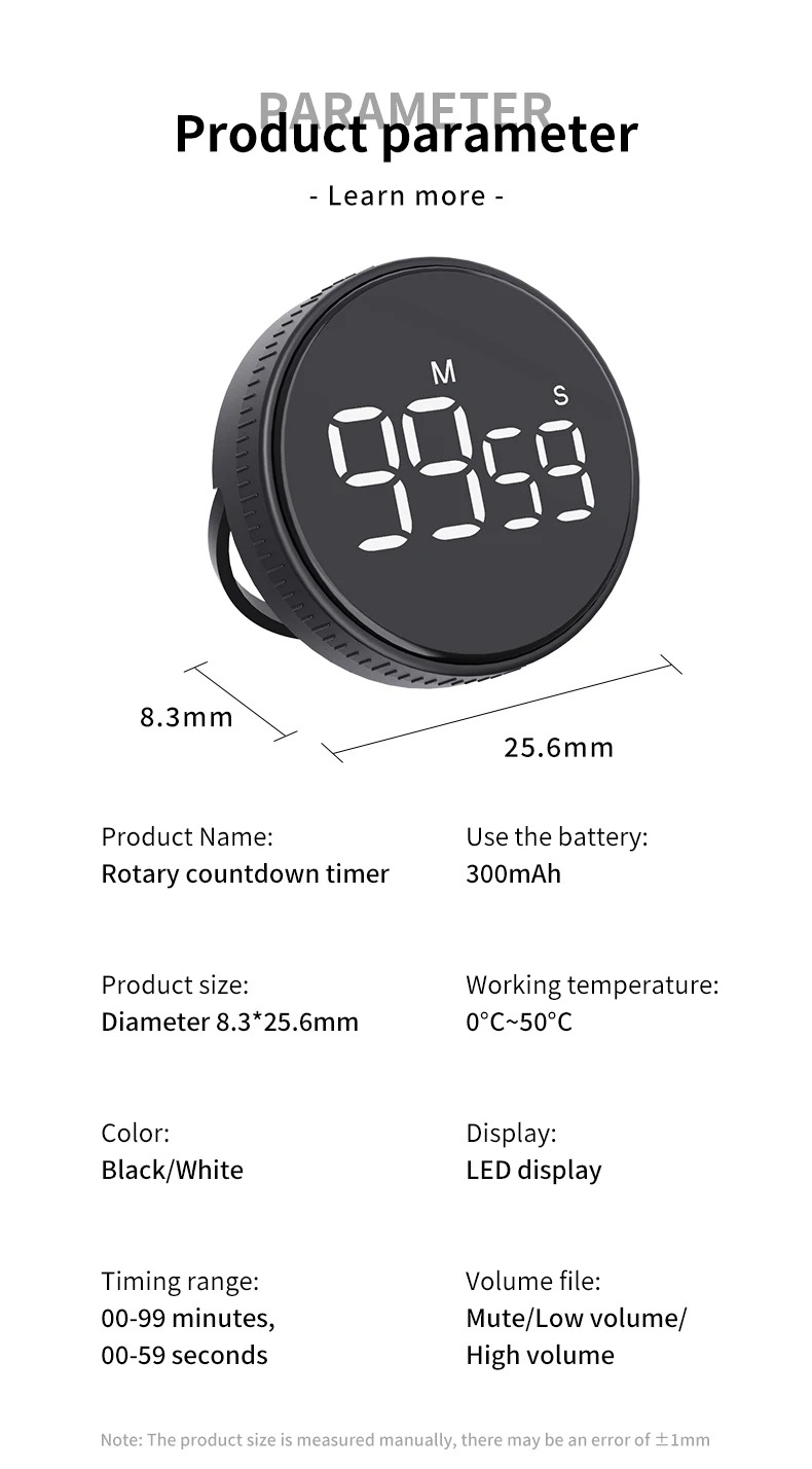 Support time counting/time count down, 00~99 minutes, 0~55 seconds adjustable range;