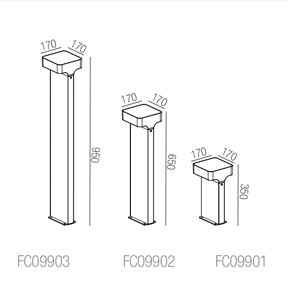 size(mm): 170*170*350/650/950