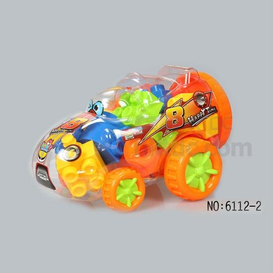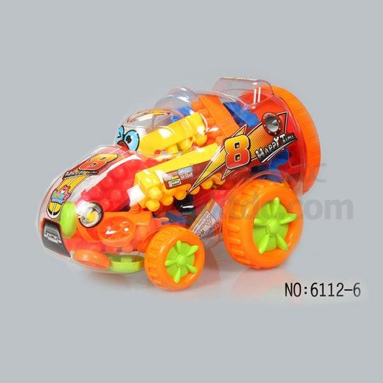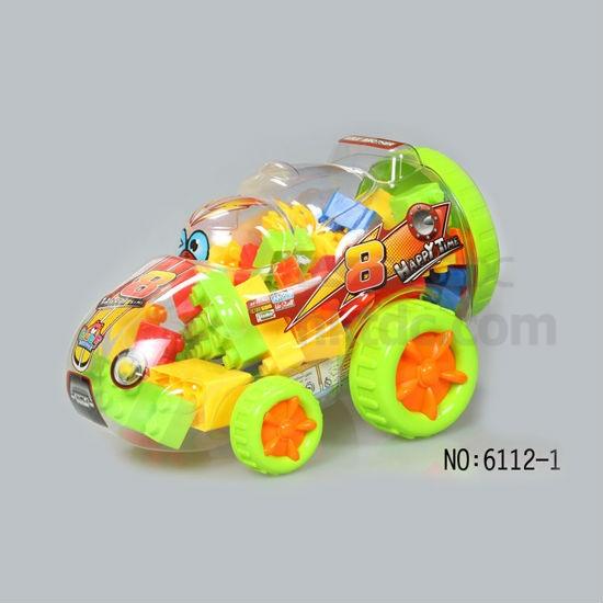 - With brightly painted building blocks and instruction for building, packed in lovely car shape
