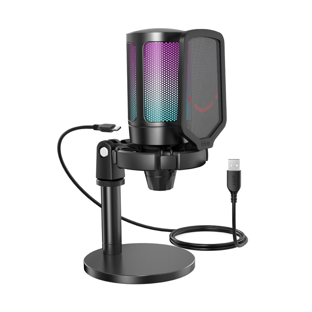 FIFINE A6 microphone delivers clear, lag-free voice with USB plug‑and‑play. Auto dual-color breathing lights, one-touch mute, perfect for gaming, streaming, or recording with effortless control and style.