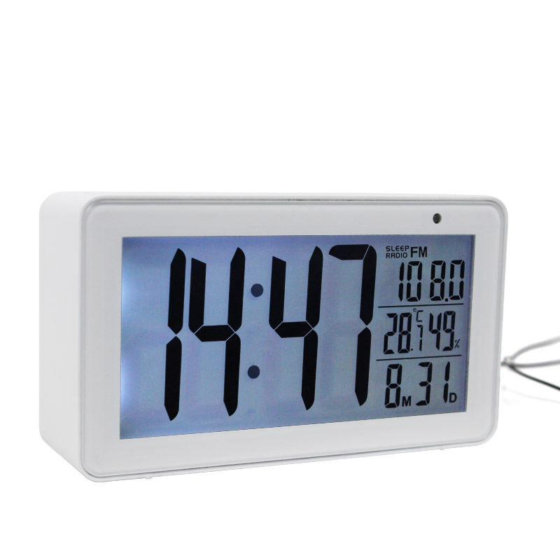 2 alarms/humidity/backlight/ temperature/calendar/ touch sensor/FM radio