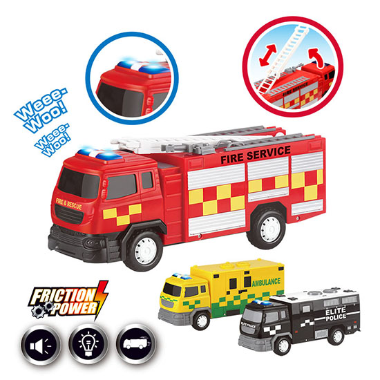 City Rescue Vehicles, 3 styles asst., contains realistic sound & light effect, 3xAG13 included