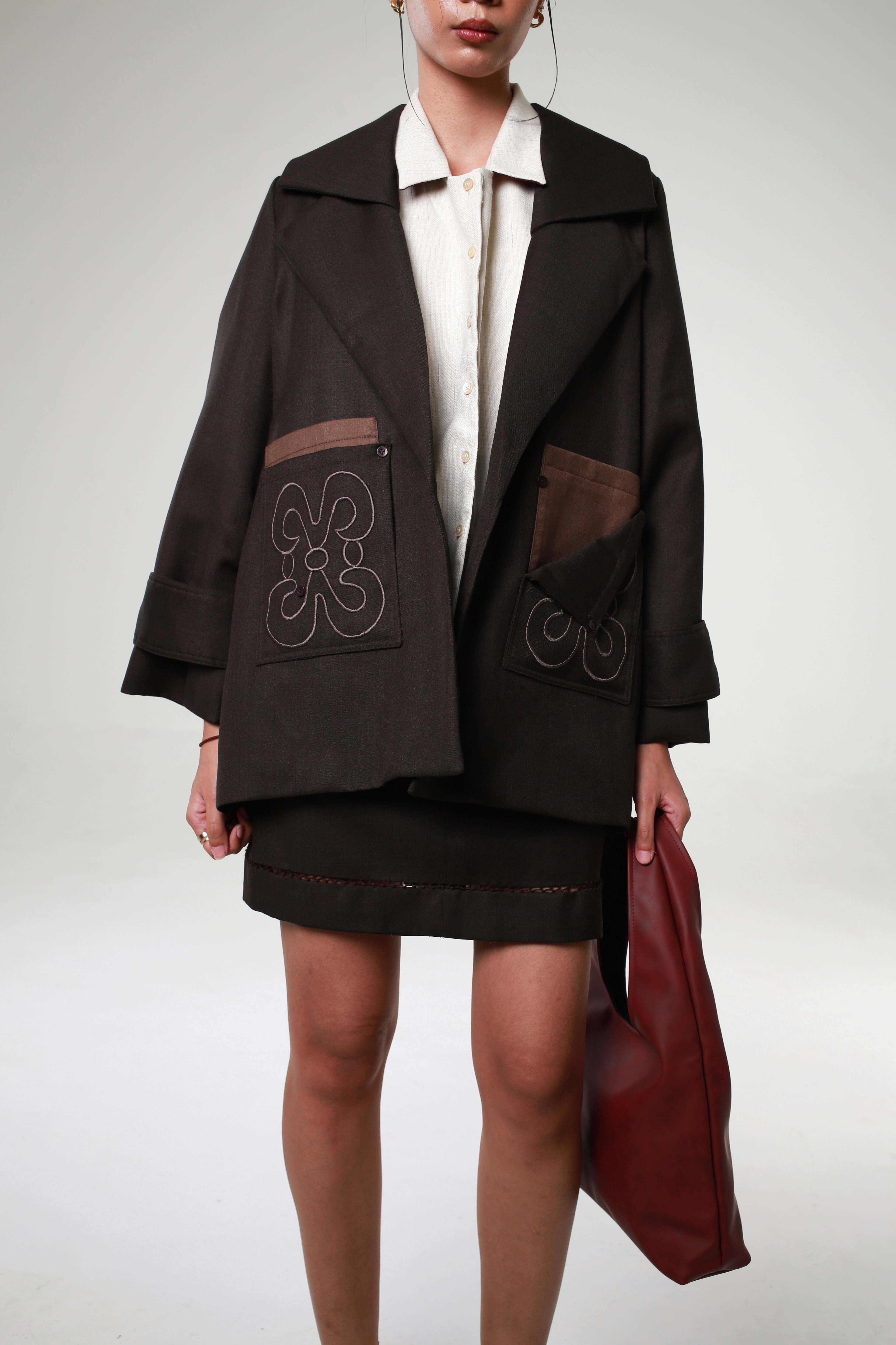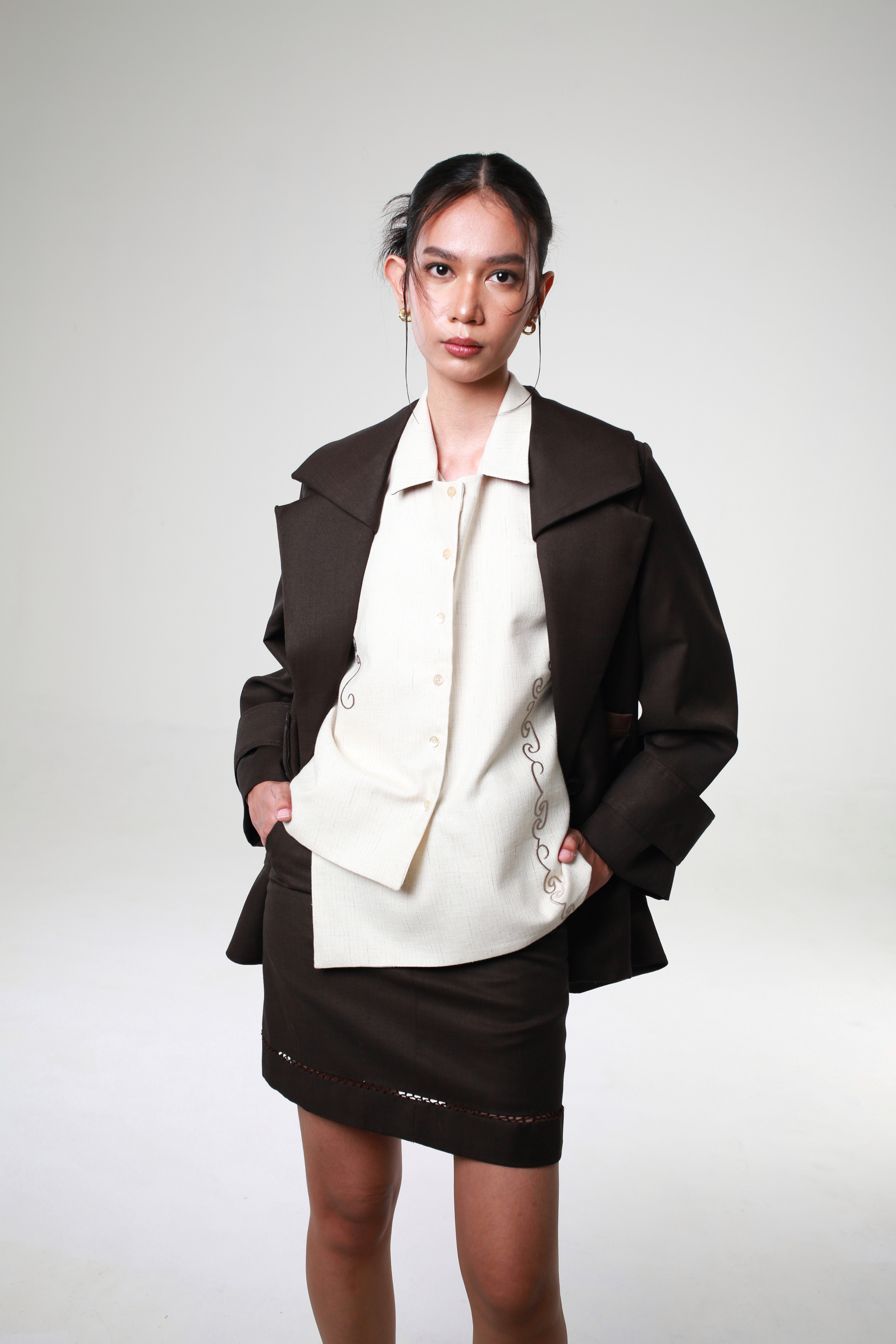 FEBBY VIOLA ANATASYAFV/SS/FGTNGMNSKRT/BRA semi-wool mini skirt with lining, featuring fagoting detail along the hem.