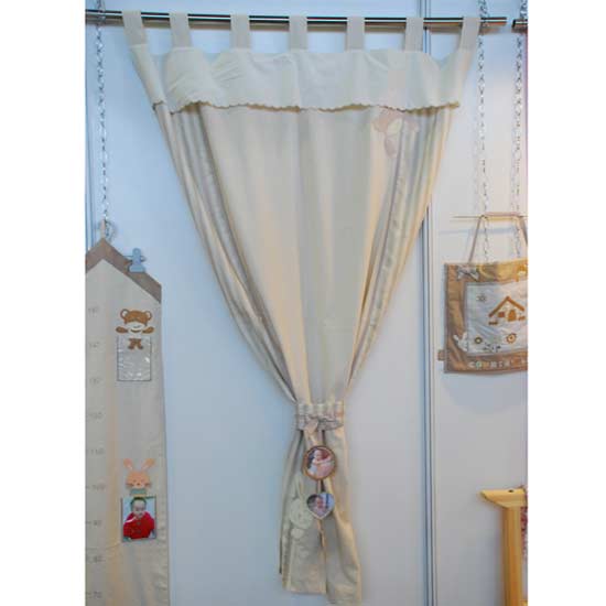 Showcased is a rabbit-themed curtain that is made of cotton and satin materials. This excellent curtain is designed with a fabric photo frame. Add this to your home for a touch of uniqueness.